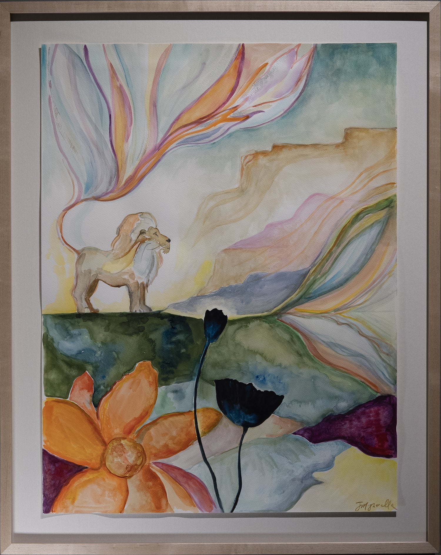 – Professionally framed in maple, floating on cream linen